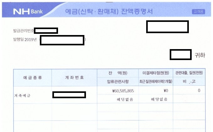 3개월 전 잔고증명서 사용가능한가요?
