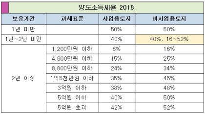 그 이유는 토지를 오랫동안 소유했다면 투기로 간주되지 않기 때문입니다. 구체적으로 토지를 매각할 때 발생하는 이익에 부과되는 양도소득세를 줄여서 소유자의 부담을 줄입니다. (세금이 얼마나 줄어드나요?) 양도소득세는 소유 기간과 과세표준액에 따라 세액 차이가 있습니다. 다른 용도로 사용할 의도 없이 단기간 소유했던 것을 매각하면 기본세율에 10%가 더 적용되어 부담이 커집니다.