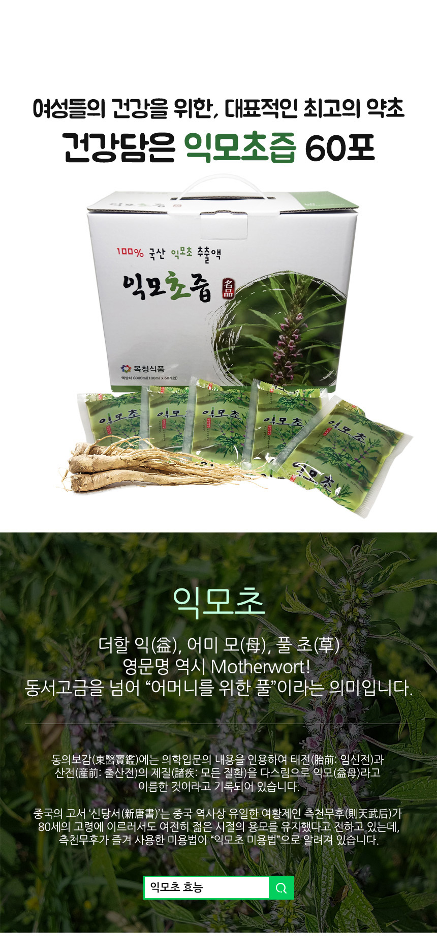 ㅇ 익모초 효능익모초 효능은 어혈을 풀어주고 여성 생리를 조화롭게 하며 혈의 순환을 돕고 수도를 이롭게 하고 자궁수축 등의 효능이 있어 생리불순 출산 시 후산이 잘 아 되는 오로불하(惡露不下)와 어혈복통(瘀血腹痛), 생리통, 타박상, 소화불량, 급성 신염, 혈뇨, 식용부진, 호홉 중추흥분, 강혈압 등의 효능이 있습니다.