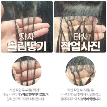 일반적으로 땋는 방법은 1mm부터 슬림땋기 등 다양하지만 이름은 중요하지 않습니다. 구조가 단순해서 매듭의 크기가 작아야 하고, 쉽게 풀리기 때문에 두피나 모발에 부담을 주지 않아야 합니다. 붙임 머리를 저렴하게 하는 것도 중요하다고 생각하지만, 사실 가장 중요한 것은 두피의 화끈거림, 심한 긴장감, 각질, 붉은 반점 등의 부작용이 절대 있어서는 안된다는 것입니다.